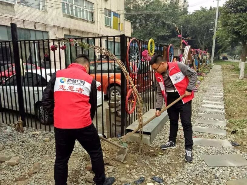 新桥口腔另一支志愿者队伍则参加了同德社区改善生态环境绿化种植活动。